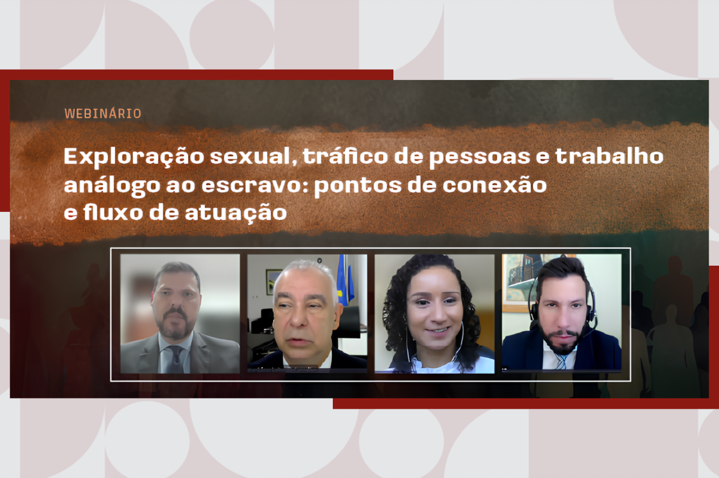 A Escola Superior do Ministério Público da União (ESMPU) promove, nestas segunda e terça-feira, 13 e 14 de novembro, o webinário “Exploração sexual, tráfico de pessoas e trabalho análogo ao de escravo: pontos de conexão e fluxo de atuação”.