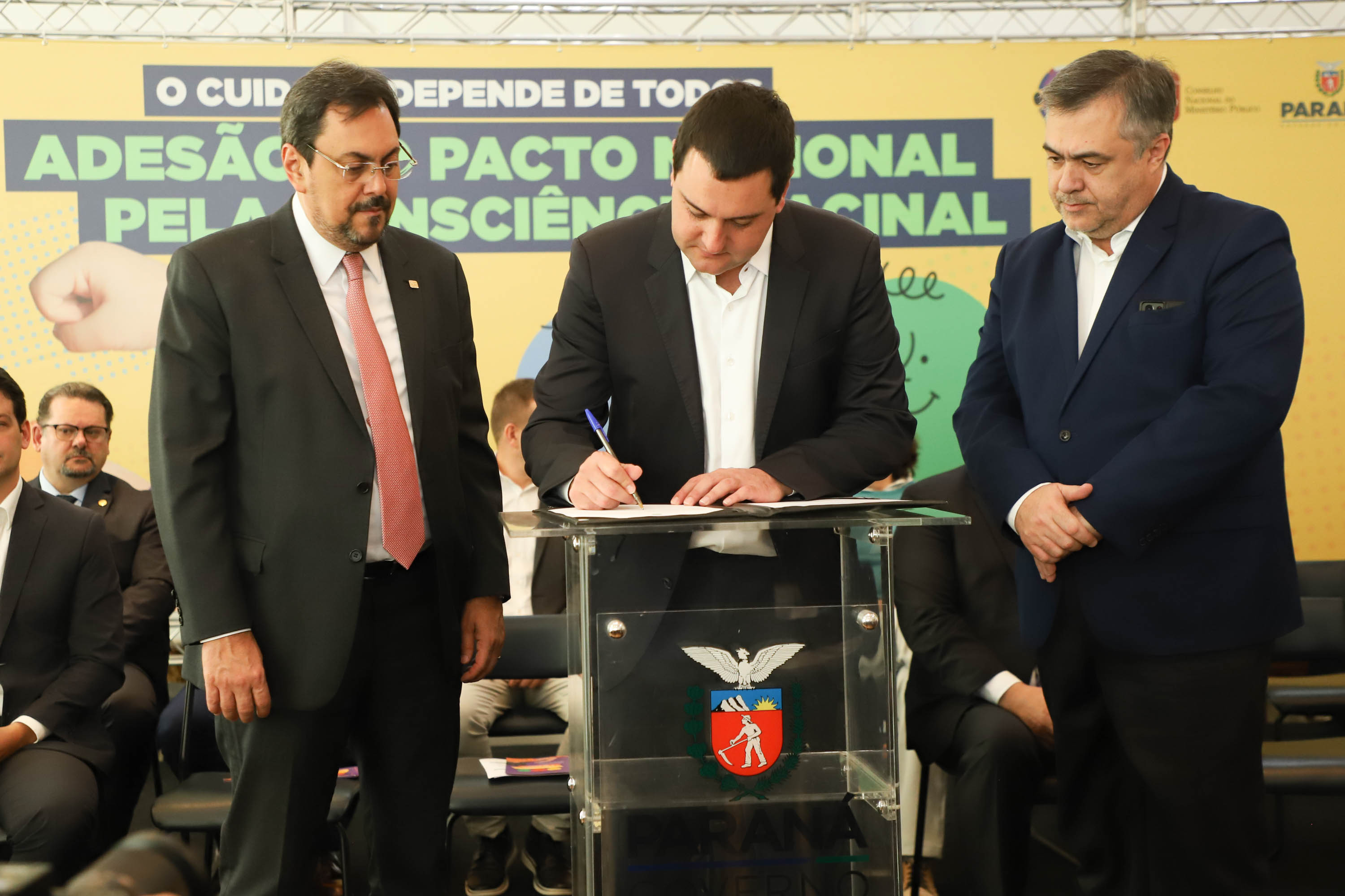 Além do Governo do Estado, assinaram o pacto a Assembleia Legislativa, os Tribunais de Justiça, de Contas e Regional Eleitoral, além do Ministério Público, Ordem dos Advogados do Brasil, Associação dos Magistrados Brasileiros e Prefeitura de Curitiba.