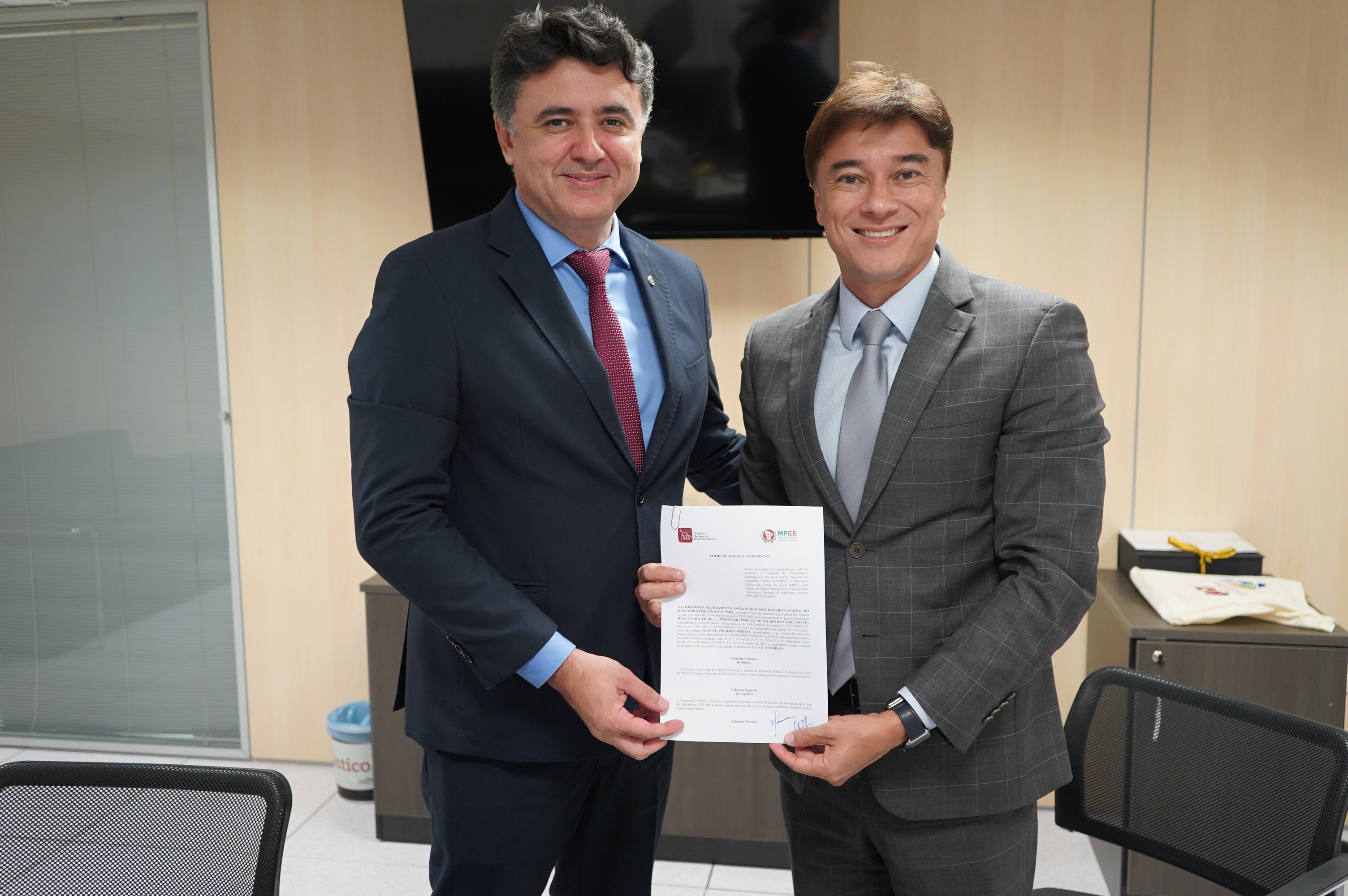 Nessa quarta-feira, 4 de maio, a CPE do Conselho Nacional do Ministério Público (CNMP) assinou termo de adesão e cooperação com o Ministério Público do Estado do Ceará (MP/CE)que formaliza a adoção do Mapa Estratégico do Planejamento Estratégico Nacional do Ministério Público.