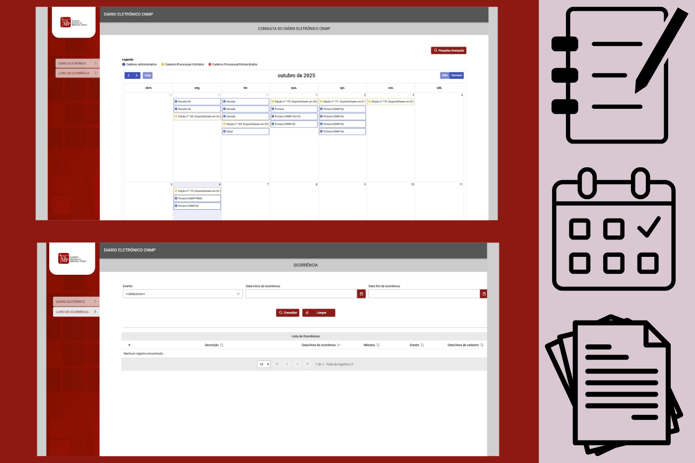 O Conselho Nacional do Ministério Público publicou, nessa segunda-feira, 20 de outubro, em edição extraodinária do Diário Eletrônico, a pauta de julgamentos da 16ª Sessão Ordinária de 2025, com 64 itens.